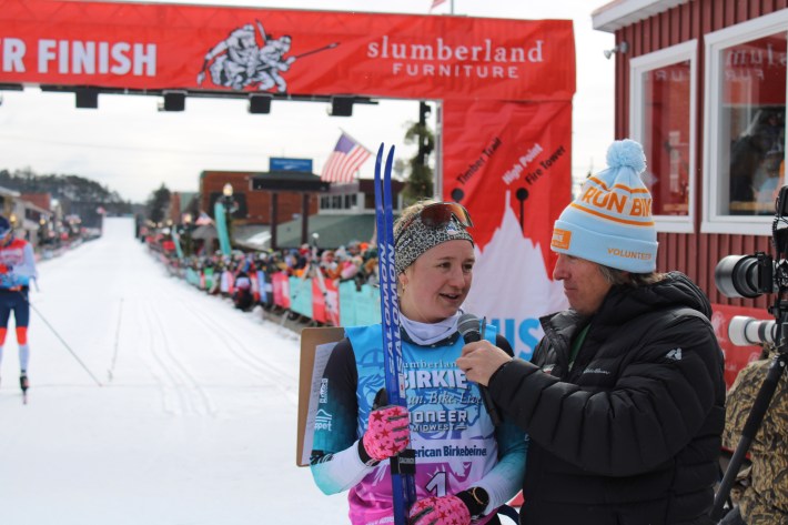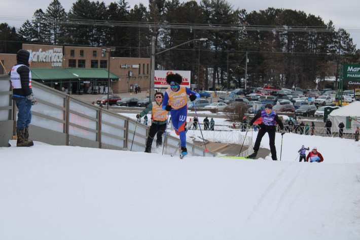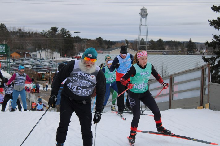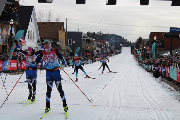 And they aren’t the only ones. Over the following 48 hours, 12,000 skiers will crest over the top of this constructed hill at the head of Main Street in Hayward before hacking and gliding their way down the final straight and over the finish line. Friday and Saturday morning, a crowd of 30,000 fans will sidle up to the ropes en masse, cowbells and beers in hand, cheering the skiers on as they gut it out down the homestretch.