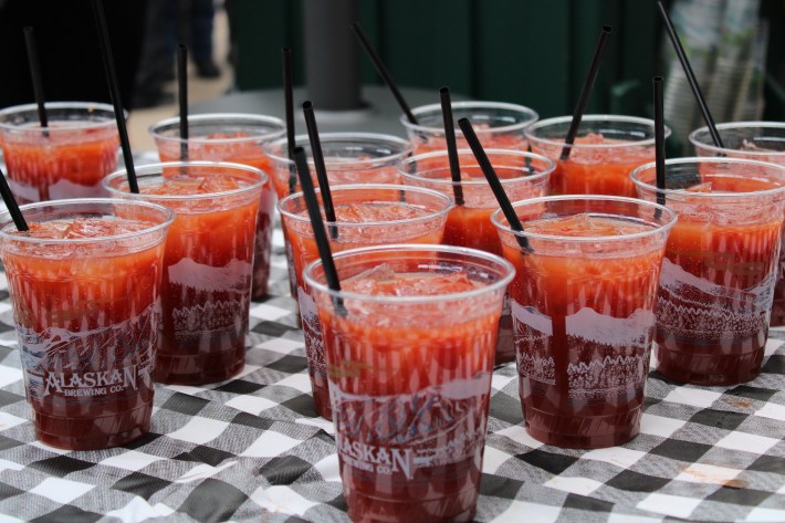 Walking around Main Street, waiting for the skiers to finish, there’s a real communal, all-hands-on-deck atmosphere. A group of men stationed at grills outside of Anglers Bar & Grill yell to me that they’ve “got beers and brats! Nothing better.” In the parking lot of Marketplace Foods, right next to the finish line, reindeer mosey around a petting-zoo pen to drum up excitement for a leather goods vendor. A group of women show me the bingo cards they’ve printed up for sightseeing during the Birkie, featuring boxes like “skier in a tutu” and “Santa look-alike.”