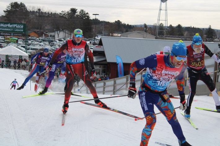 A dark, hulking nimbostratus cloud lumbers overhead and the moon punches through, bathing the frozen road in front of us in twinkling white light. We’re lined up at the edge of the curb, staring out at a roped-off racing track. Until a few days ago this was just Main Street, but it has since been expertly converted into a finely groomed path. Soon, it’ll become the home straight of the 52nd annual American Birkebeiner—the Western Hemisphere's Super Bowl of cross-country ski racing.