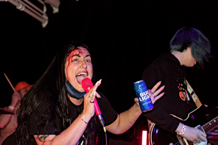 Itâs 9 p.m. on a Friday night, and avant-metal âpenis girl musicâ steward Aki McCullough is screaming from the top of a ladder mounted to the warehouse walls, fake blood dripping down her mouth, her stage makeup as alter ego ameokama somewhere between corpse paint and clown. Within the next 24 hours, frontwoman Megan Osztrosits of noise rockers Couch Slut will smash an empty beer can into her forehead, sending very real blood trickling down her face, as her bandmates persist with their noxious, sludgy riffs.