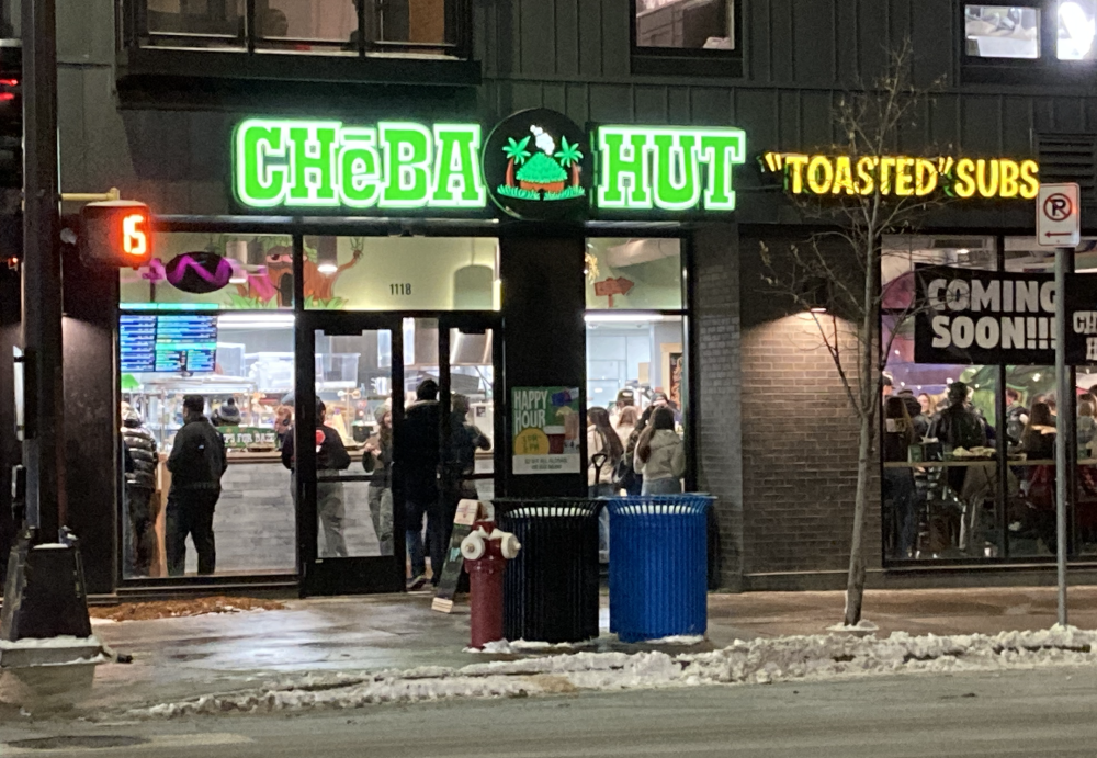 That’s right: Cheba Hut, the stoner-forward Colorado-based sub shop, is officially open. Outside, a speaker played a mix of gentle rasta tunes and bubbly house music. Inside, the air was hot and oniony as folks pounded beers and Red Bulls between hugging friends and standing in line for garlic bread.