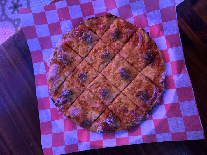 The sign of any good pizza joint? A solid cheese pizza. If the cheese pizza is lackluster, it often means your pizza place is just covering up bad dough and cheap cheese with too many toppings. Good Times’ cheese pizza is about as good as it gets, with two types of mozzarella—BelGioioso fresh mozzarella and Grandë aged mozzarella, both from Wisconsin—and shaved Grana Padano at the end for a finishing flourish. It doesn’t get much better than that.