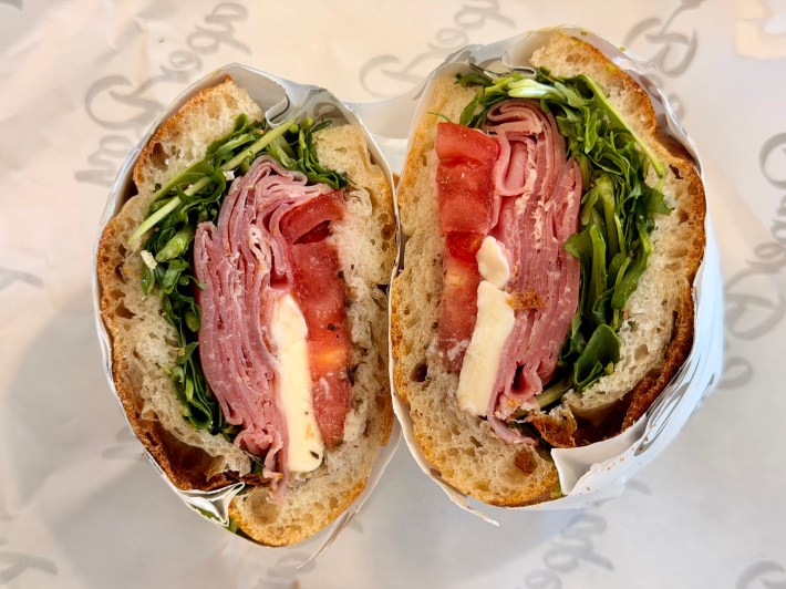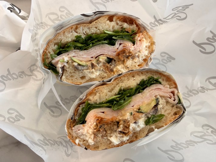 When designing a turkey sandwich, the sandwich architect should be gripped by the paranoia of: Is this thing dull? Turkey sandwiches, as a rule, don’t have to be dull. But that’s the rap, and the Bianca ain’t beating it. The creamy stracciatella cheese doesn't bring enough stank, the roasted veggies barely packed any textural benefit, and, I'm sorry, extra virgin olive oil isn't a sauce—mayo would've been more exciting. That said, it’s clear we’re working with fresh, higher-end ingredients here, so between the pleasant meat and delightful bread, the experience isn’t a net negative. We’ve had $15 bummer sandwiches, one of the yupster life’s great sadnesses. The Bianca, instead, exists in a nether region of “eh, fine.”