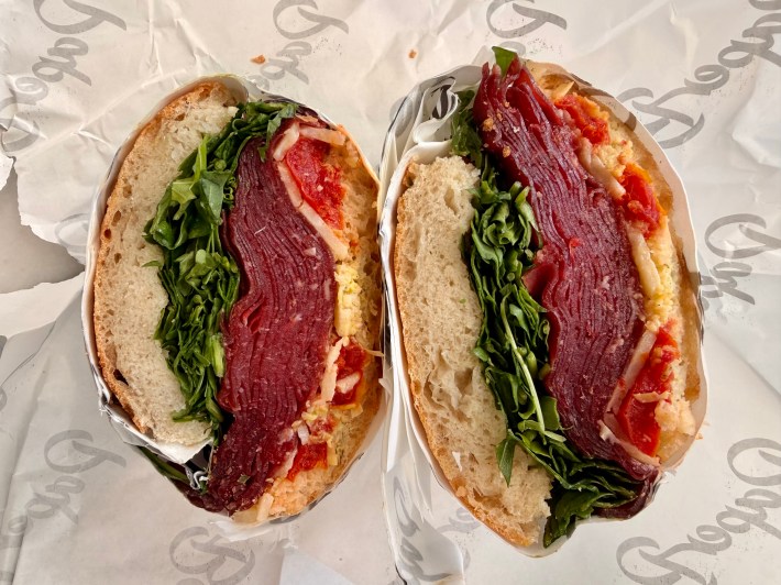 PaperBoy serves all of its sandwiches on schiacciata, a Tuscan flatbread that’s kind of like a skinnier, slightly crispier focaccia, and those attributes lend it to sandwich vesseldom in a lovely way. Like Marty’s Deli, which made a case for serving all sammies on focaccia when it opened a few years ago, PaperBoy is doing tremendous PR for schiacciata—even the blander of the sandwiches we tried got a boost from the sturdy and flavorful fermented bread.