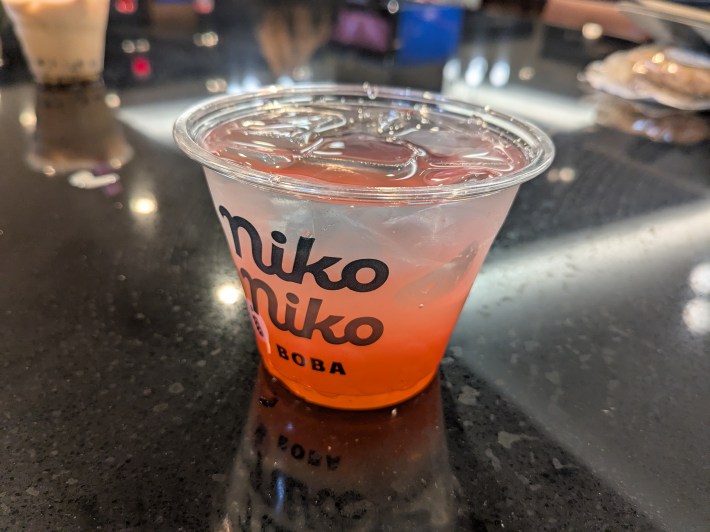 Hey, these are a nice treat! People are hating on the overhyped dirty soda trend these days, but if you dig a root beer float, these cola-with-creamer concoctions are conceptually adjacent. The boba drinks are pretty bomb, too. We tried a milk tea with brown sugar boba that popped like plump raisins. A strawberry refresher was easy drinking, not overly sweet and highly refreshing, also with pleasantly poppin’ balls. No, we’re not going to order one during a game instead of a beer or hard seltzer, but we’d happily recommend one for a kid. Or maybe a Mormon.