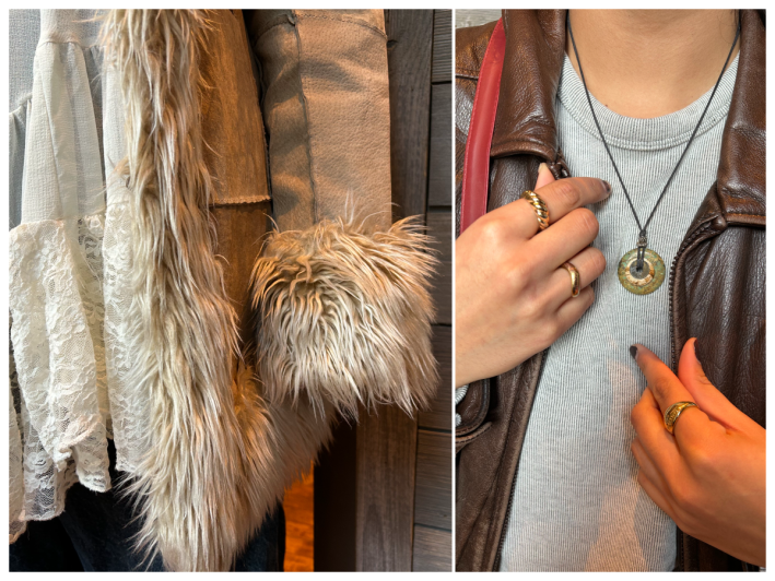 Cassy: I’ve been liking to wear dresses, like lace dresses, over jeans. And I just found a cardigan. But I wanted to feel comfortable today while also making me feel a little elevated, which I got with the fur coat and the lace.