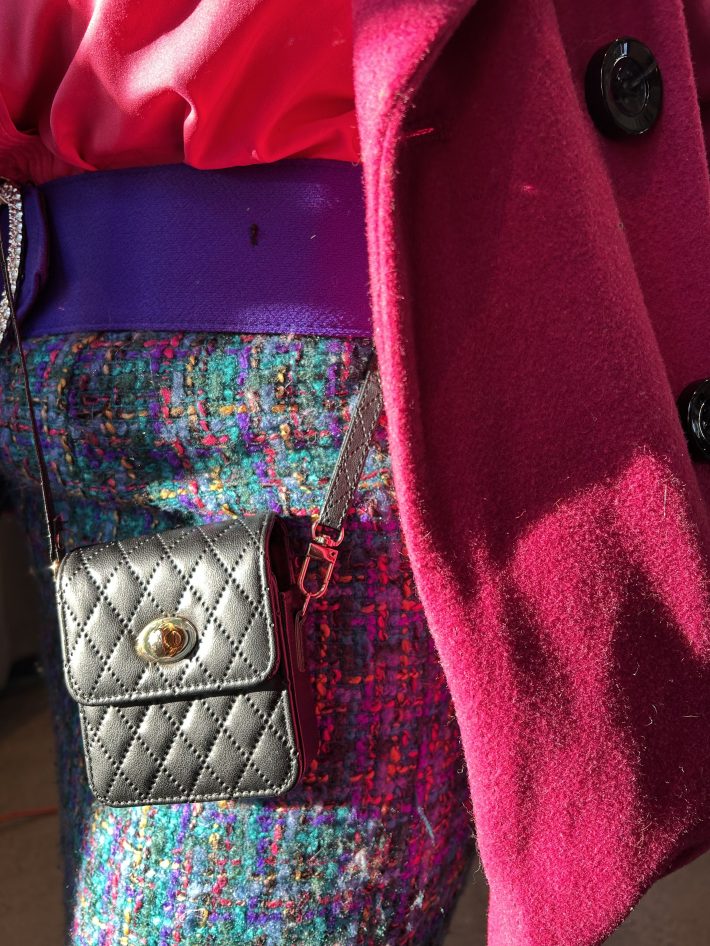 Tiara: It’s a simple yet comfortable outfit, but I wanted to elevate it a little bit with accessories. I chose this red [bag] for a pop of color and a more formal shoe to not be too casual. I knew I wanted to wear this baggy jacket, so I chose the other things to accentuate it a bit more.