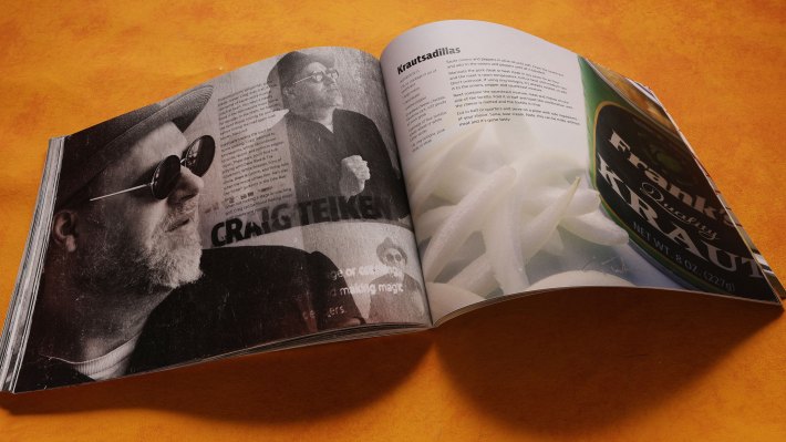 …And then, on the other end of the spectrum, you’ll get recipes like Hamburger Cupcakes from Jon Clifford of HiFi Hair and Records in Loring Park, or Craig Teiken’s Krautsadillas—yes, that’s a quesadilla with sauerkraut, and Baumgart says it’s “quite fantastic.” The recipes are divided into Opening Acts (apps, salads, etc.), Headliners (entrees) and After Party (desserts).