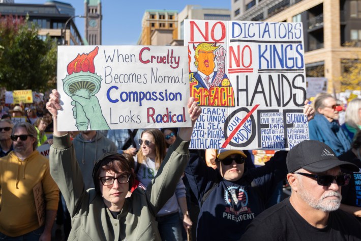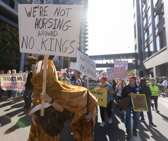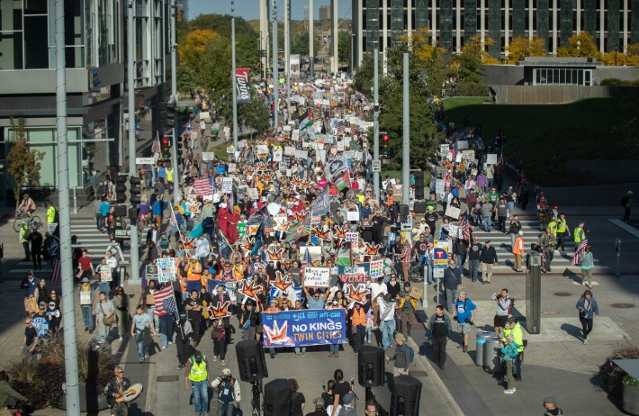 On Saturday, more than 2,700 "No Kings" protests against the policies of the Trump administration took place around the country. Dozens of events were held throughout Minnesota, even in deep red districts, and the downtown Minneapolis march brought out an estimated 100,000 people.
