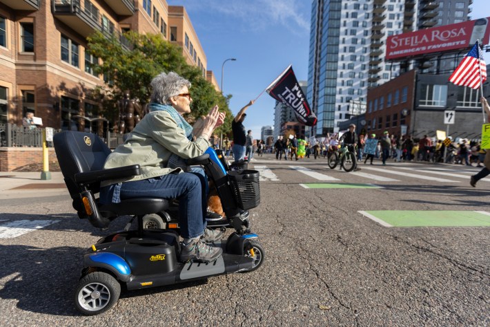 Juhn adds that while there weren't many counter protesters, one person did confront Attorney General Keith Ellison over the death of the Kingsley Bimpong, the Black man who, according to a lawsuit, died of a stroke in an Eagan jail last year as police ignored his symptoms.