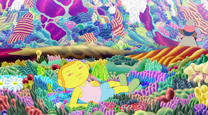 Arco is a boy from the distant future, where people live in fantastical homes on stilts, high above the Earth, and have developed the ability to travel through time. He’s too young for such a journey, so he steals his older sister’s rainbow cape and the gem that powers time travel and winds up in a less-distant future–about 50 years from now. Things have and haven’t changed—the world looks similar, except that domes go up around houses to protect them from extreme weather, and working parents communicate with their children via hologram while robots do the caretaking. Here Arco meets a lonely girl named Iris, and they develop a cute friendship; she sketches the world he describes to her while he tries to teach her the language of birds. But three weird brothers find Arco’s jewel, potentially leaving him stranded. While pleasant enough, this Ghibli-derivative toon from French illustrator Ugo Bienvenu never quite lives up to the promise of its intricate world-building. The human faces are oddly inexpressive and the dubbed voices—especially those of Will Ferrell, Andy Samberg, and Flea—don’t help any. Cute and thoughtful, but curiously inert. B
