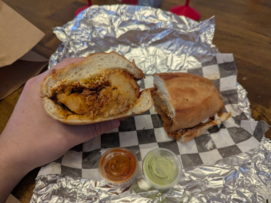 Never have I whipped out my phone to snap a photo so fast. (Yes, yes, from the passenger seat—take it easy.) I apologize for the grainy photo quality, but in my defense, the sun was setting, the driver was getting away, and I was shaking with laughter.