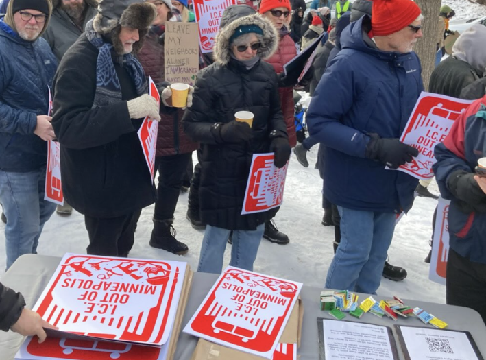 While the signs are free, BRLSQ has also been selling anti-ICE merch, from T-shirts to pins, on their website, with funds going to Joyce Uptown Food Shelf and the Phillips Neighborhood Urgent Relief Fund.