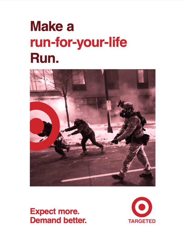 “Co-opting their branding elements and referencing their style is my way of saying that Target, through their inaction, is really endorsing what is happening here,” he says. “That's why we need to ‘Expect more, demand better.’”