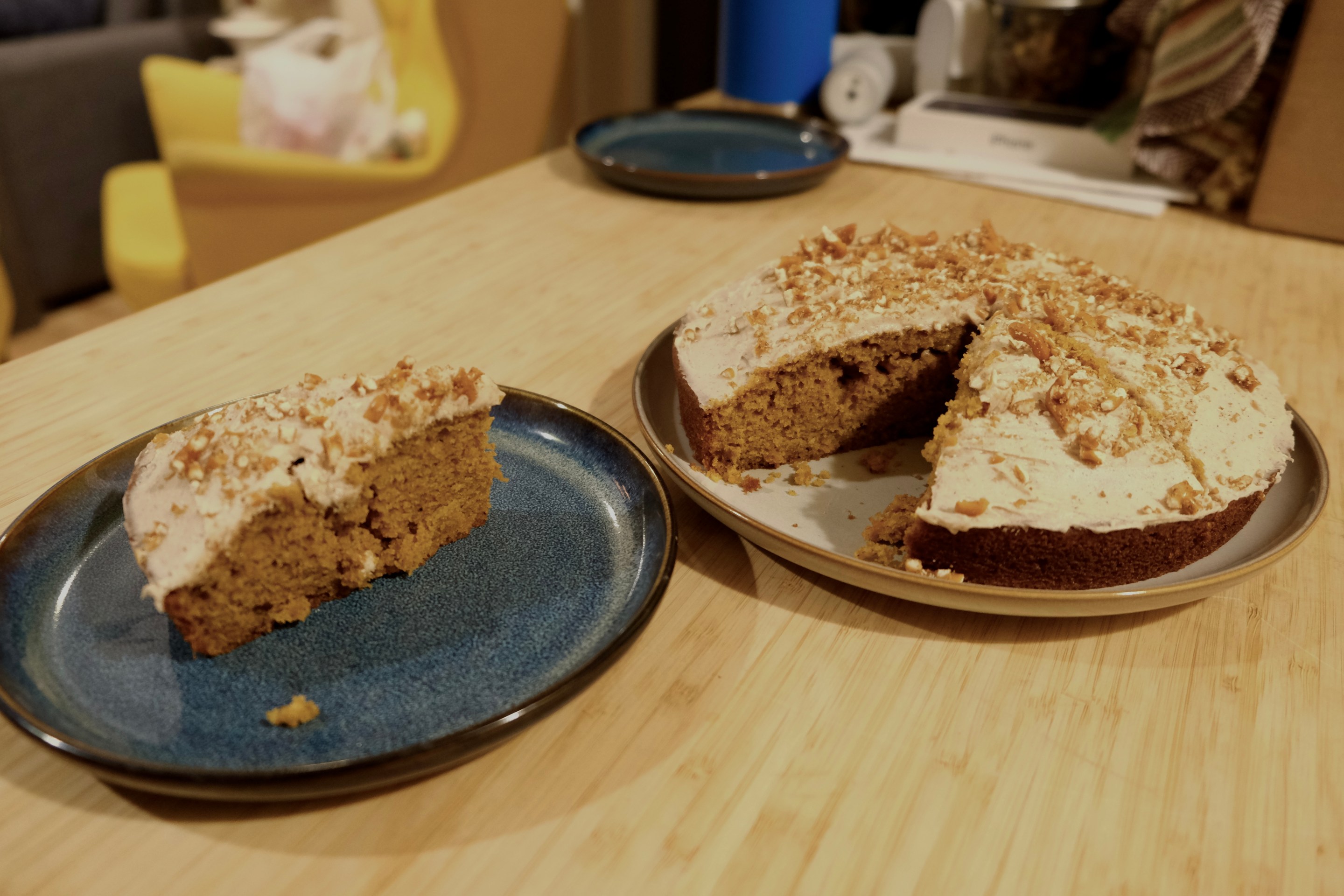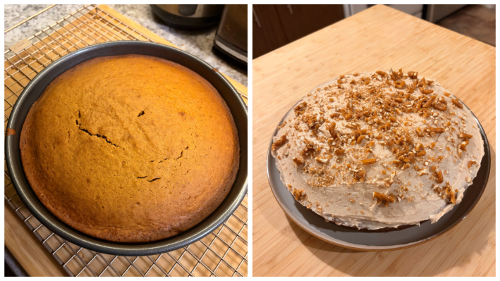 Since the main source of THC in this recipe is in the cannabis-infused olive oil, finding an easy way out for this one is particularly tricky. You could just make the cake using normie olive oil and have the only THC source be the pretzels, but that drops the dosage significantly to only 10–15mg for the entire cake. Alternatively, you can add your desired dosage of Sota Drops into the batter. Or you could always just eat a store-bought pumpkin cake and take a bong rip with every bite. Either way, you’re getting a good bake from a baked good.