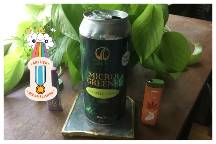 Look, I’ve had some real bad flavored sparkling waters, and quite a few have been THC-laced. When dealing with artificial flavors you’re going to get a lot of unpleasant chemical tangs and fruit-flavoring that just doesn’t taste right. That is not a problem with Micro Greens. The notes of pineapple and mango here are but a whisper, but they're there and actually taste like the real stuff. Think juicy like Spindrift, but with THC added into the mix.