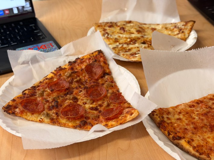 Enter Pizza Luna, which celebrated its grand opening on February 27. The new pizza shop comes from Ary Ramirez, and her menu is full of classics (cheese, sausage, pepperoni) as well as specialty pies (dill pickle ranch, Hawaiian, buffalo chicken). These are big, floppy, triangular slices ($4.99-$5.49) with a crust that’s on the thinner side, just waiting to be popped into the oven; do you know what I mean if I call them “mall slices” (complimentary)? Gluten-free crust is available, and so are dairy-free cheeses. In addition to slices and 10-inch or 16-ich pies, they’ve got wings, mozzarella sticks, and salads.